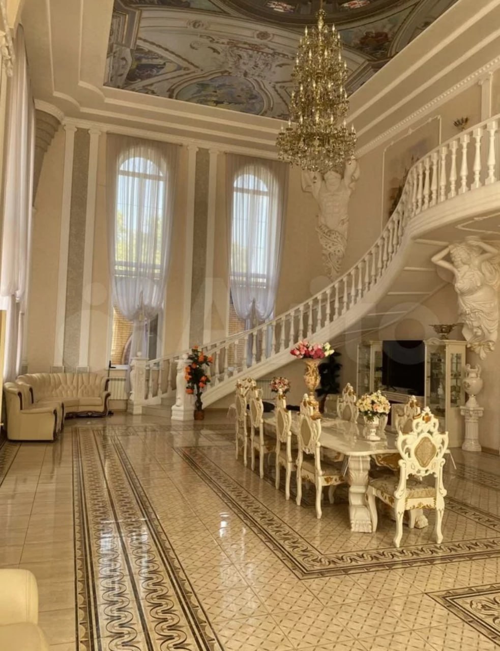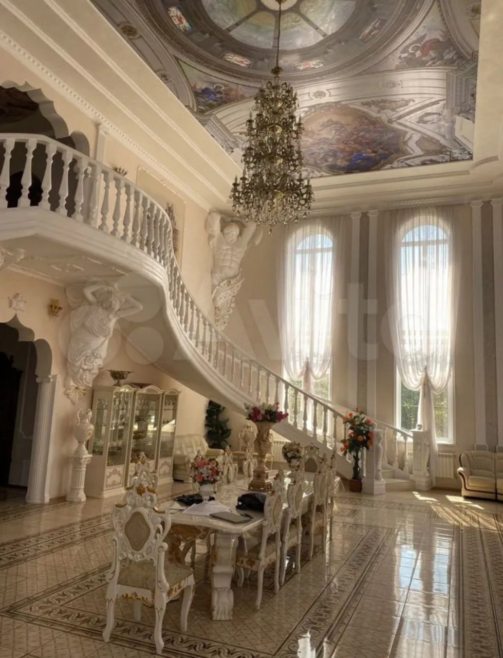 Дом был построен в 2018 году. В итоговую цену входят, ко всему прочему, баня, гараж, бассейн, бильярдная, терраса, прачечная, автомобильная стоянка на 9 машин и гостевой домик на участке в 100 квадратных метров. Хозяин объясняет продажу дворца своим переездом в другой город.