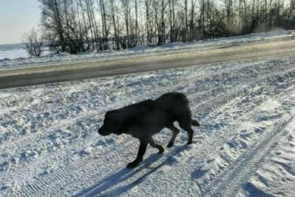 Несколько дней на трассе в Знаменском округе бегает бездомный пёс. Он без ошейника, подходит к людям, но боится машин.