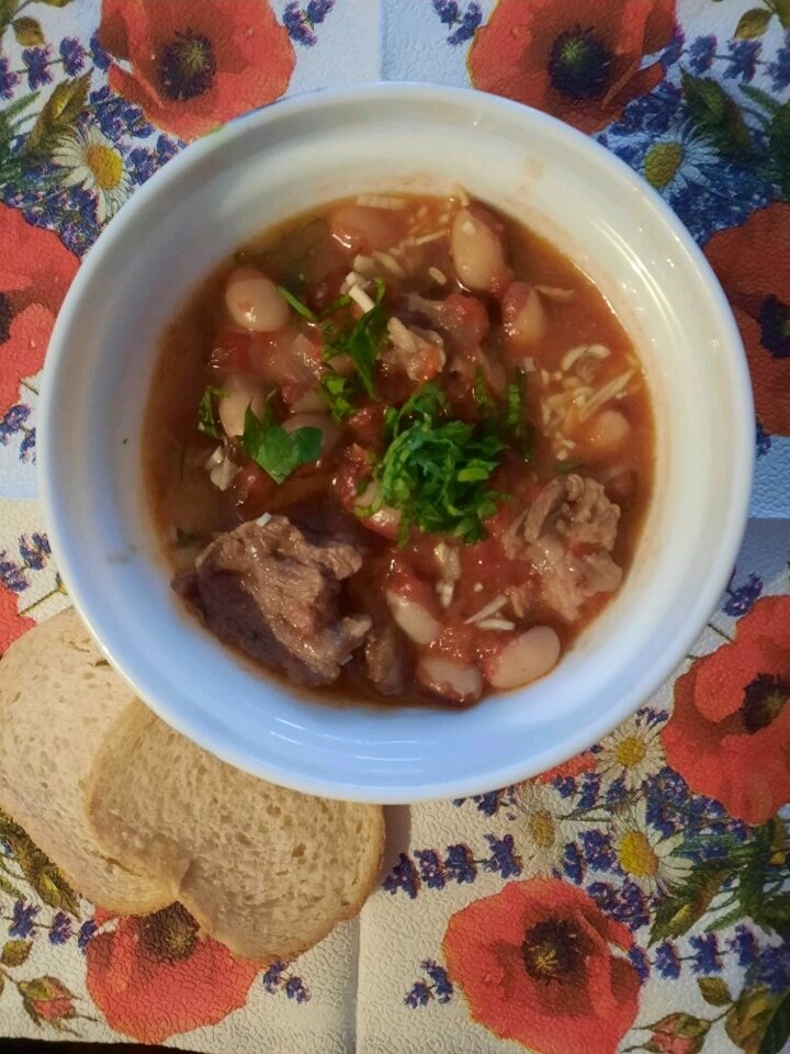 Как только мясо станет мягким, добавьте сваренную фасоль и готовьте ещё 10 минут. После этого выключите плиту и оставьте на 20 минут под крышкой.