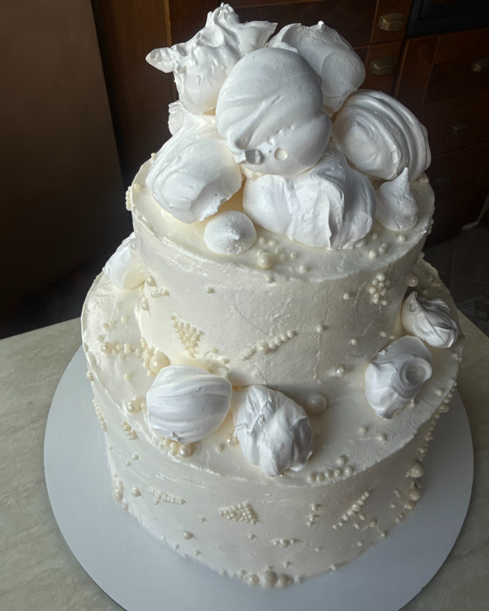Перепеченные коржи необходимо оставить остывать. Также, если коржи случайно пересохли, их можно слегка пропитать водой. Нанесите обильный слой крема между коржами и сверху — не экономьте на оформлении!