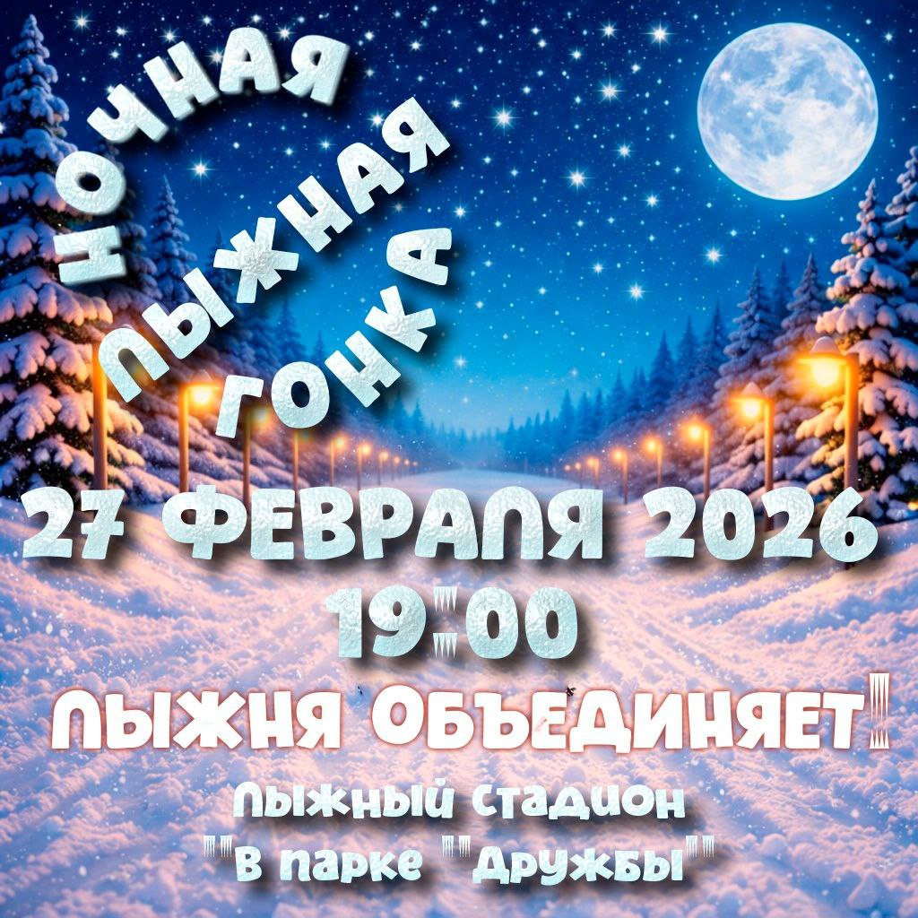 В пятницу, 27 февраля, на стадионе в парке “Дружба” состоится «Ночная лыжная гонка – 2026». Начало соревнований - 19.00. Дистанция для всех участников одна – 3 км.