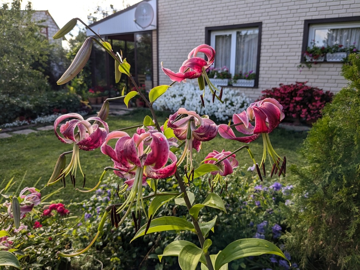 На фоне уже увядающих восточных лилий, этот сорт начинает показывать свою красоту, добавляя яркие акценты на садовом фоне.