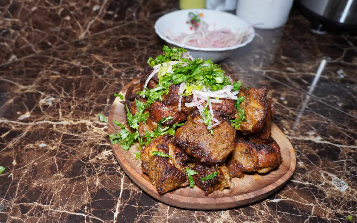 - Специи: соевый соус, черный перец, копченая паприка, сушеный чеснок, абхазская аджика, хмели-сунели, растительное масло, 6% яблочный уксус
