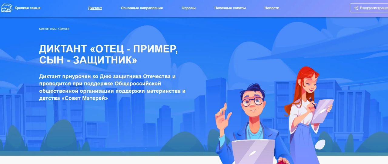 Дан старт тематическому онлайн-диктанту проекта «Отец – пример, сын – защитник». Он приурочен ко Дню защитника Отечества и проводится при поддержке общероссийской общественной организации «Совет матерей».