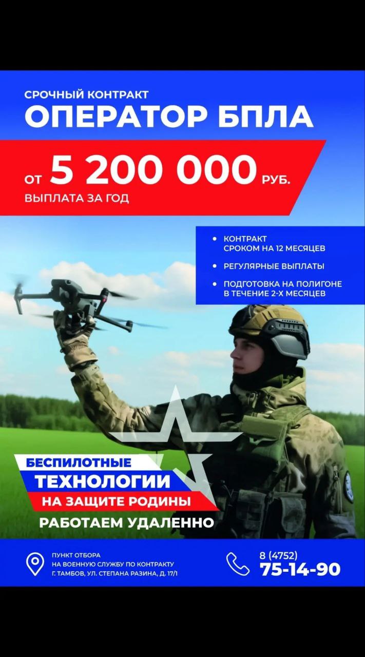 Тамбовчан приглашают на службу по контракту в войсках беспилотных систем ВС РФ