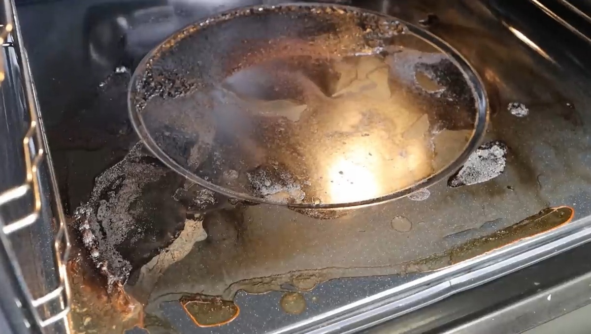 Теперь нужно воспользоваться этим раствором. Поместите его в духовку, добавив немного воды на дно для предотвращения пригорания. Разогрейте духовку до 200–250 градусов и оставьте её в таком состоянии на 15–30 минут. Пары помогут размягчить жир, и процесс очистки станет заметно проще.
