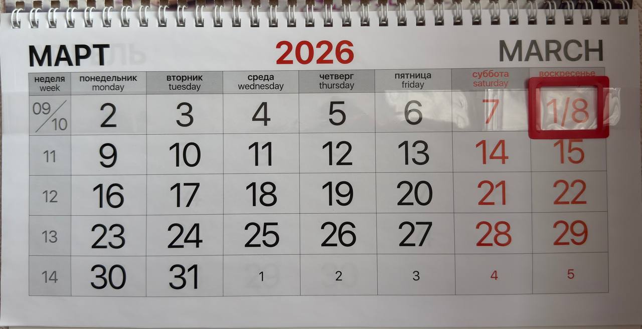 Отметим, что вторая рабочая неделя месяца будет четырехдневной и начнется с 10 марта.