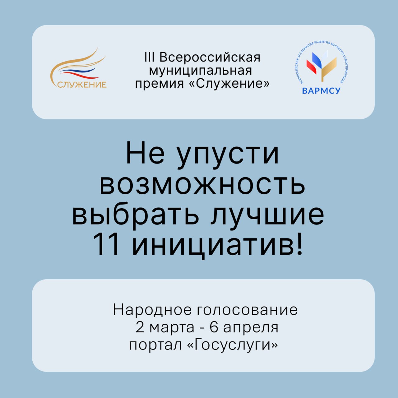 Со 2 марта началось Народное голосование III Всероссийской муниципальной премии «Служение». Жители страны смогут сами определить лучшие муниципальные практики и инициативы.
