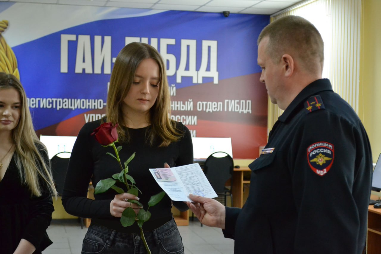 В преддверии праздника сотрудники МРЭО вручали девушкам, получившим водительские удостоверения, не только документы, но и цветы с открытками.