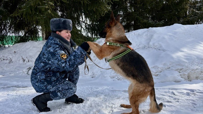 В профессии она не так давно — с 2023 года. Сейчас она начальник кинологического отделения отдела охраны в исправительной колонии № 3 Рассказовского округа. Её напарник — двухлетняя немецкая овчарка Руби.
