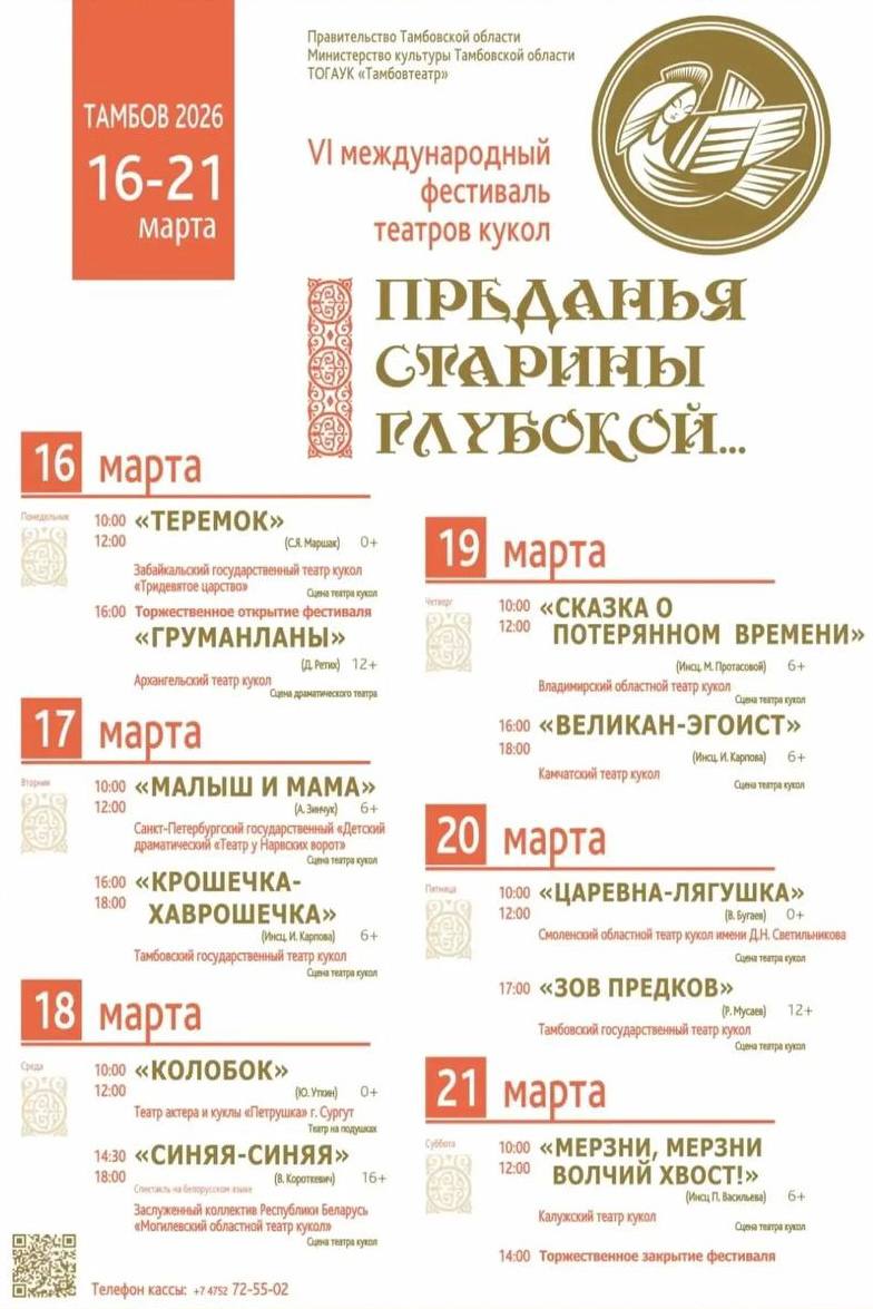 Во внеконкурсной программе фестиваля особое место занимает спектакль Тамбовского театра кукол «Зов предков» (12+), вошедший в список 300 лучших спектаклей конкурса «Золотой фонд театральных постановок России».