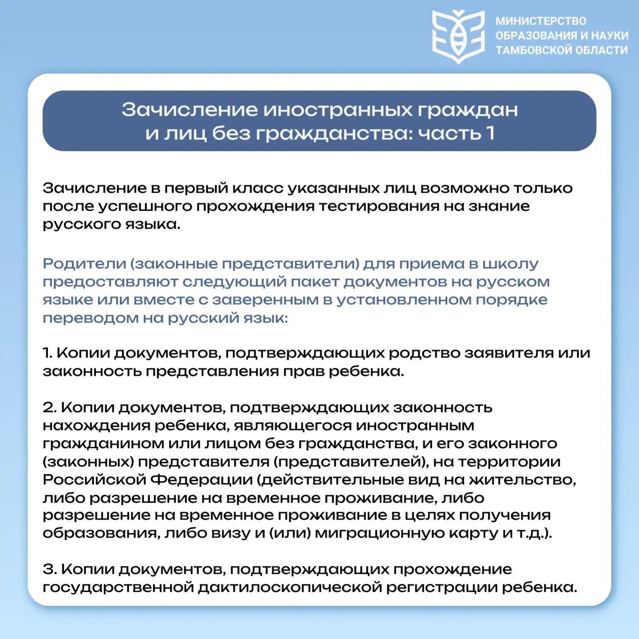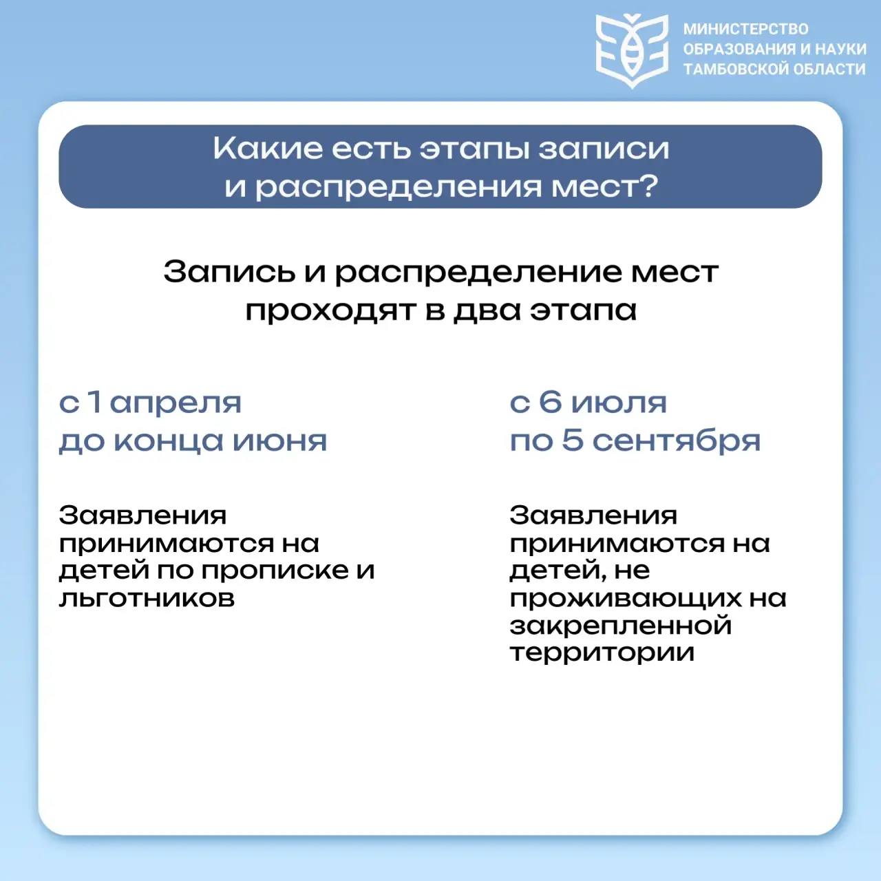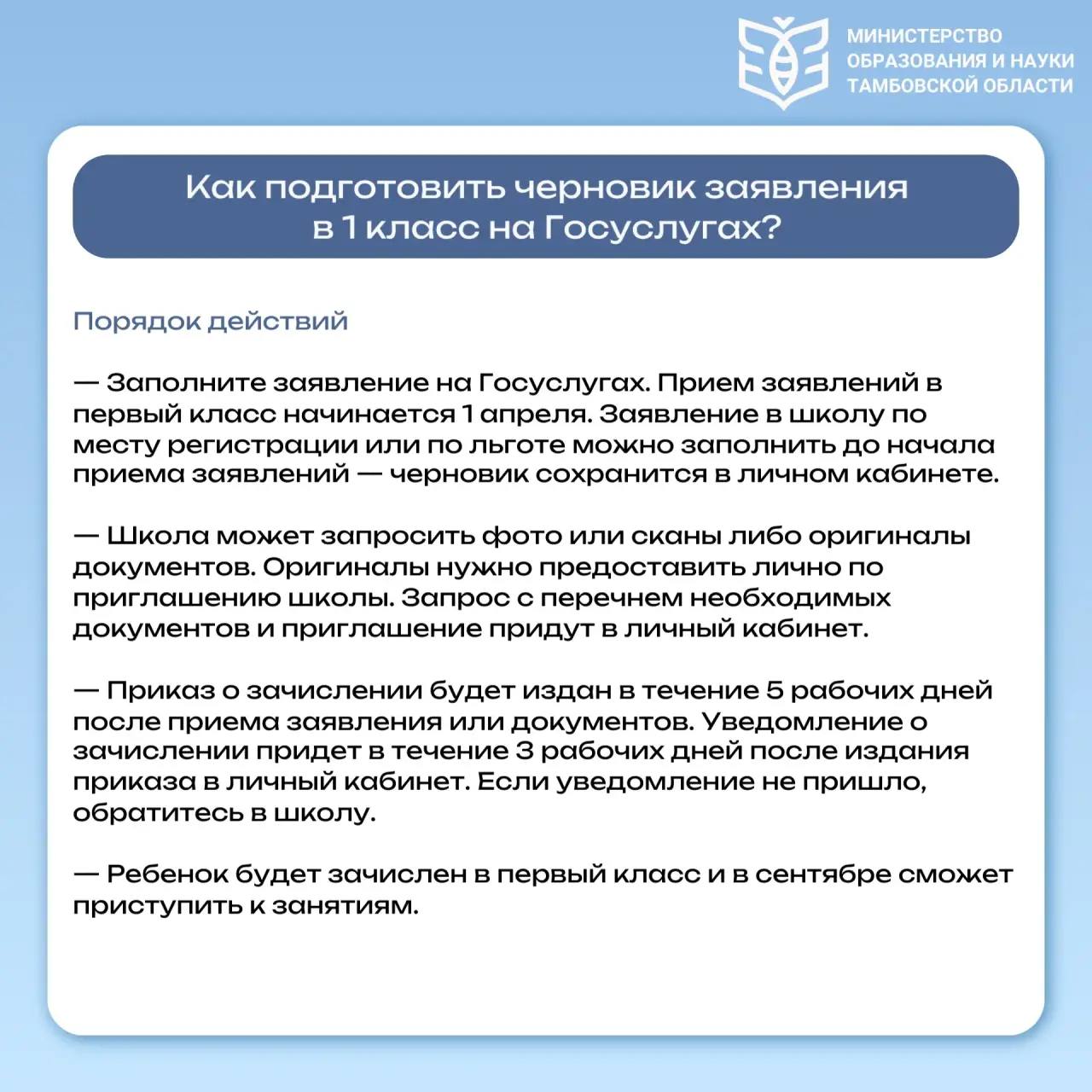 В министерстве образования и науки Тамбовской области рассказали, как будет проходить зачисление первоклассников в школы.