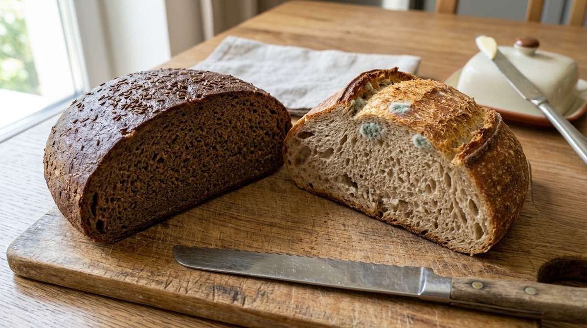 Многие заметили, что белый хлеб плесневеет гораздо быстрее, чем ржаной. Это не случайность. Рафинированная мука, лишённая отрубей и зародыша — источников природных антиоксидантов и органических кислот, создаёт условия для быстрого роста плесени. Белый хлеб имеет нейтральный pH, что является идеальным окружением для размножения микробов, тогда как ржаной хлеб формирует кислую среду, которая сдерживает развитие микроорганизмов.