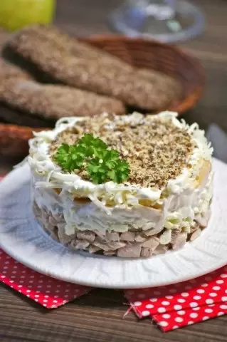 Этот необычный салат с курицей и яблоком украсит любое застолье и удивит гостей своим оригинальным сочетанием ингредиентов. Идеальное блюдо для тех, кто любит новые гастрономические открытия!