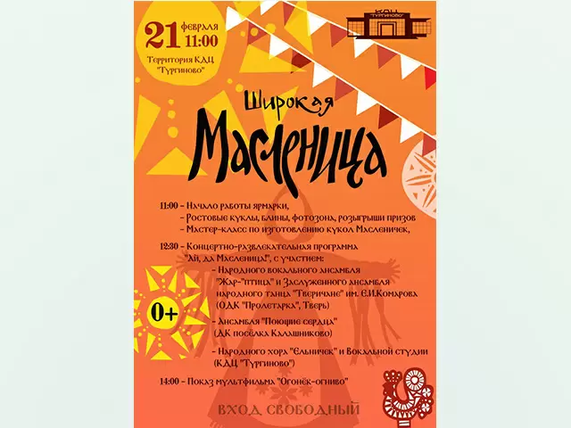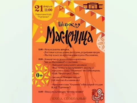 21 февраля в Культурно-досуговом центре «Тургиново», расположенном под Тверью, пройдет масштабное уличное гуляние под названием «Ай, да Масленица»! Гостей ждёт яркая атмосфера: на площади перед КДЦ разместятся торговые ряды с яркими берестяными изделиями, натуральным медом, вязаными игрушками и плетеными корзинами, а также разнообразной сувенирной продукцией.