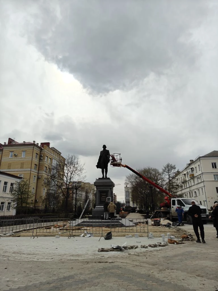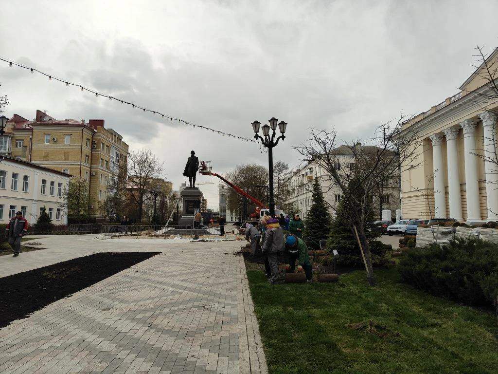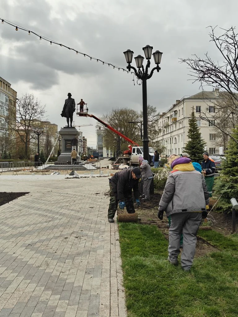 Вокруг памятника сейчас кипит работа: рабочие зеленхоза укладывают рулонный газон и обновляют клумбы. Торжественное открытие памятника назначено на 27 апреля.