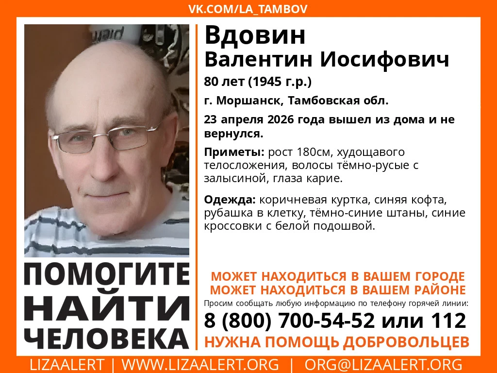 23 апреля 2026 года вышел из дома и не вернулся.