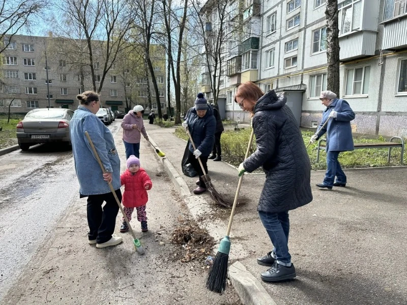 Работы по уборке прошли на общественных пространствах и во дворах. Участники приводят в порядок газоны и малые архитектурные формы, а также собирают мусор, ветки и прошлогоднюю листву.