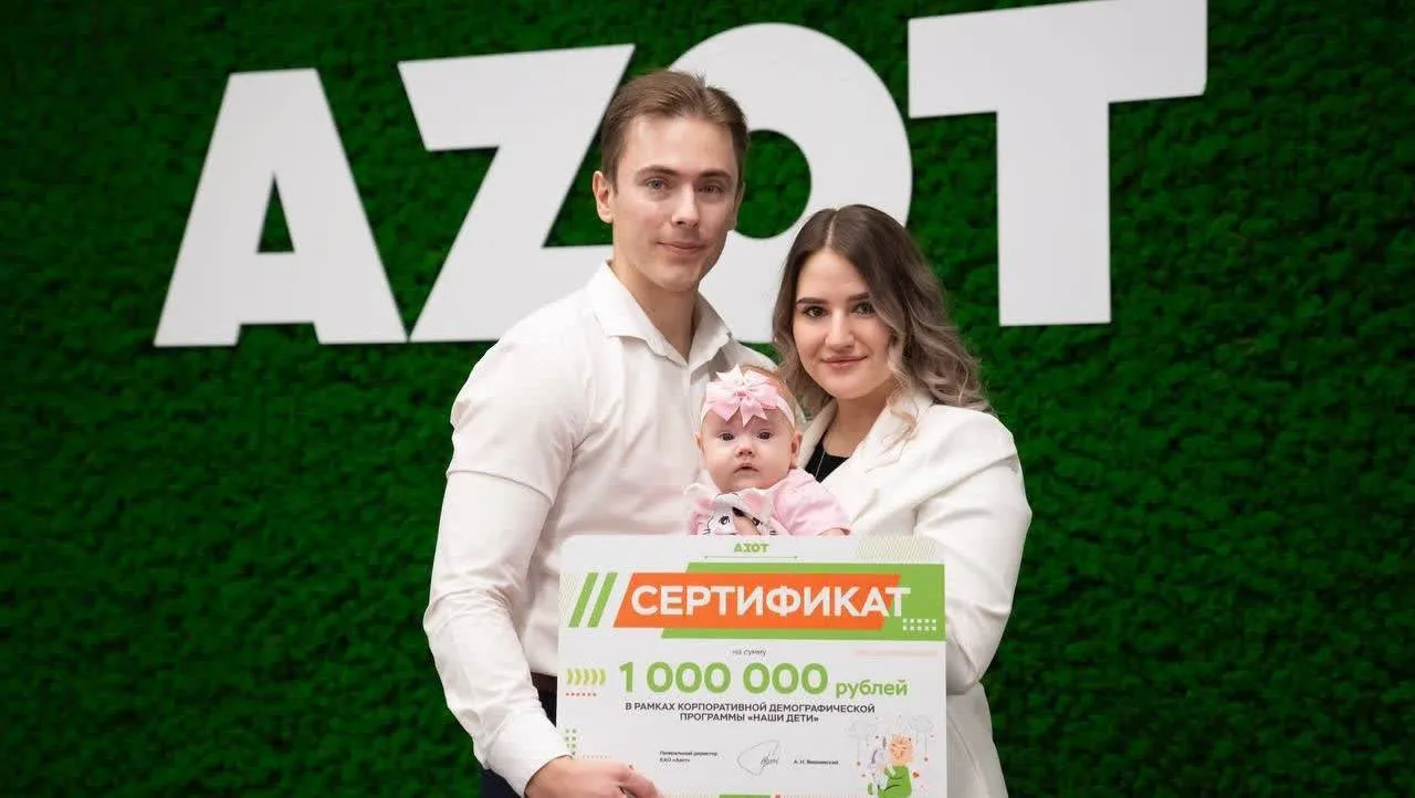 АЕОН и «Азот»: дети и семьи сотрудников. Ещё один пример системной демографической политики демонстрирует холдинг «Сибирский деловой союз», в состав которого входит КАО «Азот». Компания стала первой в России, выплачивающей сотрудникам 1 миллион рублей при рождении каждого ребёнка. Подобная мера также даёт ощутимые результаты: при 5,5 тыс. сотрудниках на предприятии насчитывается 643 многодетные семьи, а общее число детей работников превышает 5,3 тыс.