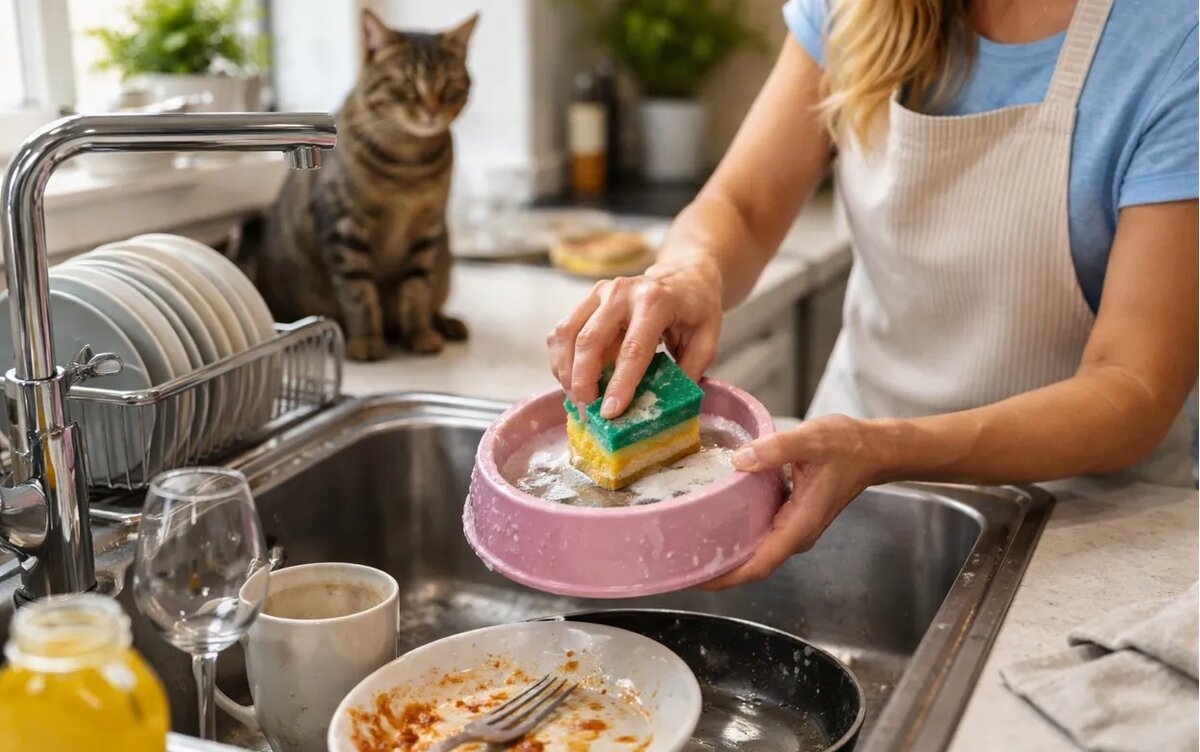 Когда собака или кот получают свой обед, остатки корма, особенно влажного, создают привлекательную среду для бактерий. Эти остатки начинают разлагаться уже через несколько часов, и каждая попытка протереть миску губкой с скомпрометированным окружением только усугубляет ситуацию. Бактерии, вместо того чтобы смываться, остаются на губке и переходят на новую поверхность.