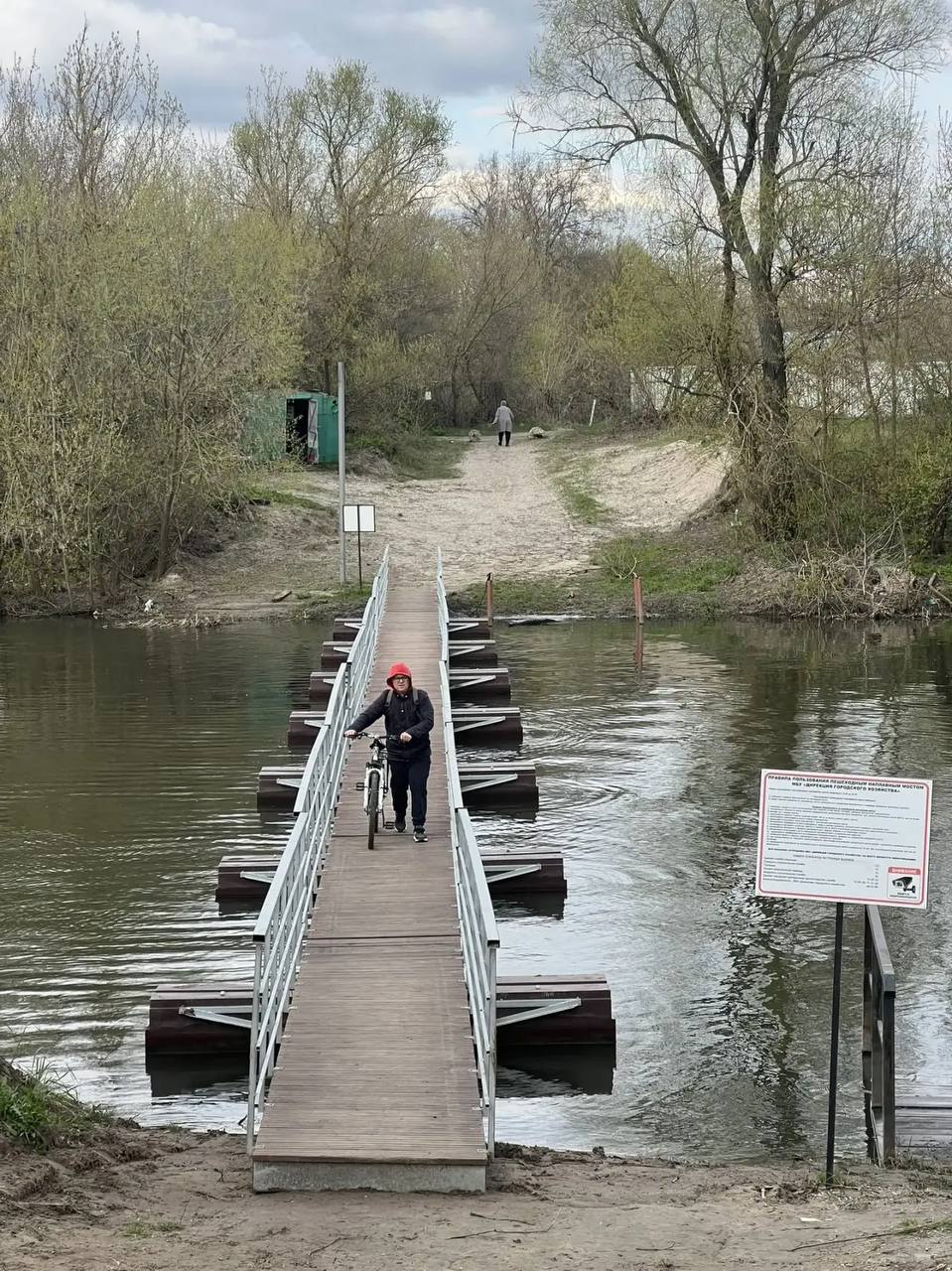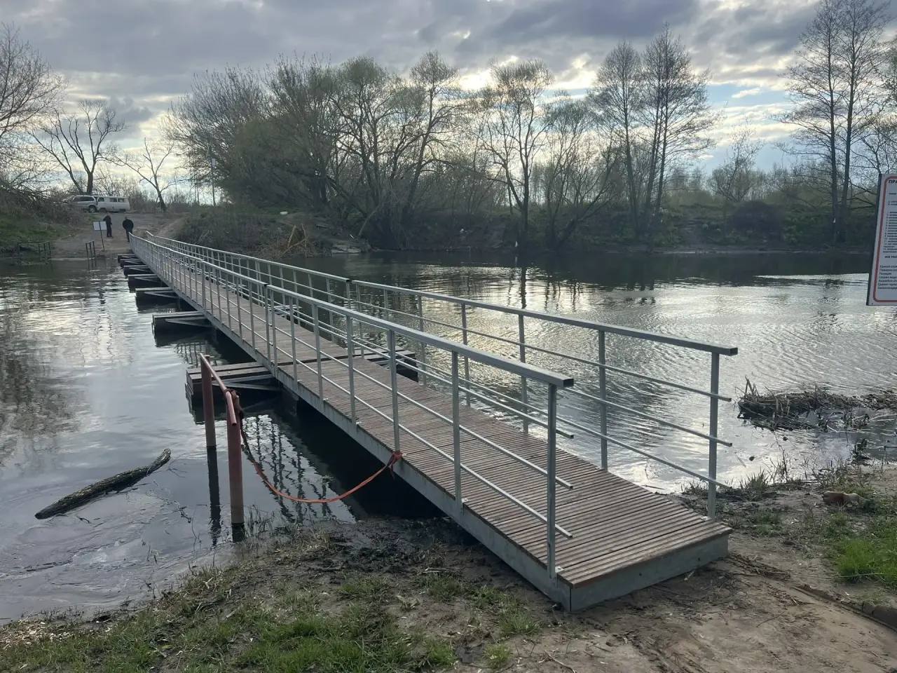 Напомню предысторию. В 2024 году старый паром ушёл под воду, и переправа стала невозможна. В апреле 2025 года по просьбе жителей было принято решение приобрести и установить пешеходный понтонный мост через реку Цну.